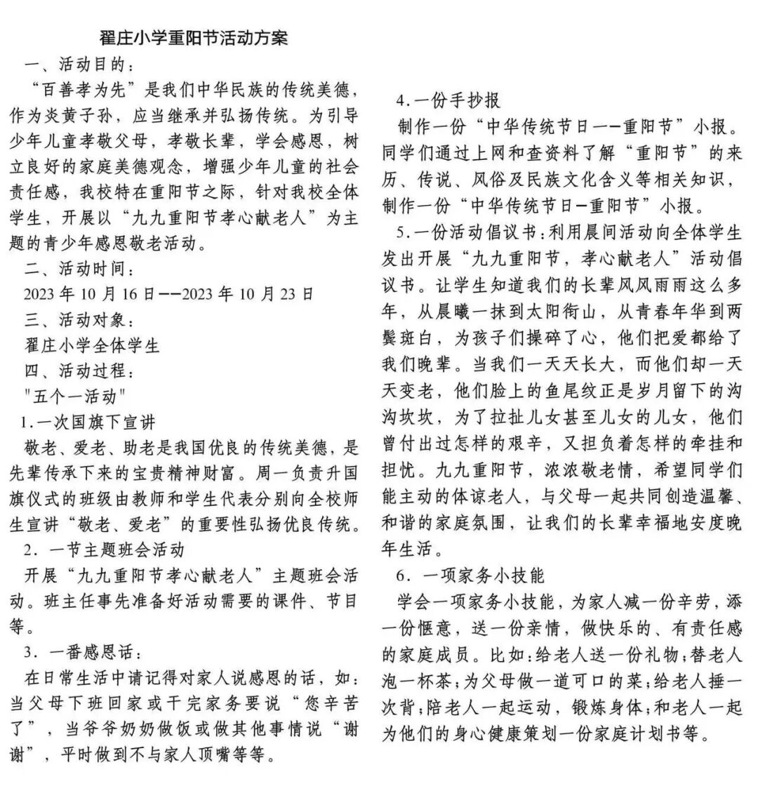 重阳寄深情 黄花染霜鬓——翟庄小学积极开展重阳节主题活动