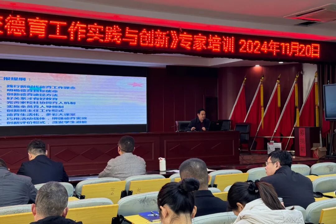 会上,中国教育学会家庭教育专业委员会常务理事、山东省教科院家庭教育兼职教研员、山东省教科院基础教育评估专家、枣庄市大中小学思想政治教育一体化指导中心副主任武杰作《探究德育工作的实践与创新》专题讲座。
