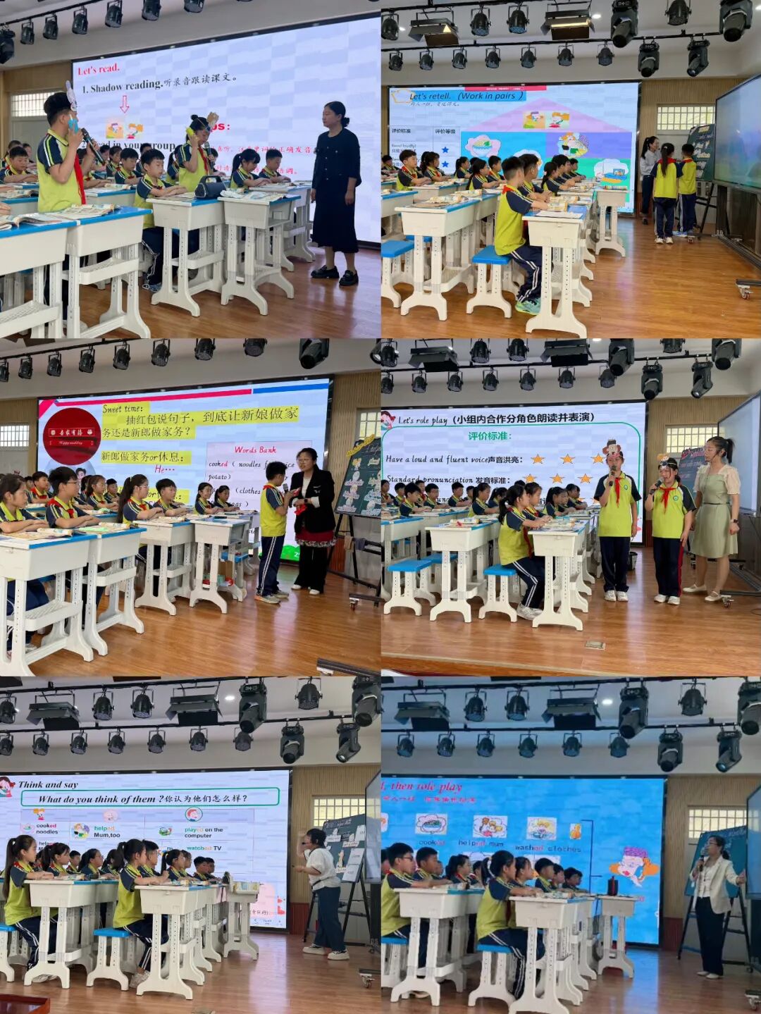 本次赛课聚焦四年级英语课堂教学,六位教师根据各自的教学风格和课程内容,巧妙地将新课标理念、创新的教学方法融入教学中,让学生在课堂上能够积极参与、自主探究,真正成为学习的主人。在课程设计上,以教师为主导,以学生为主体,由浅入深,层层递进。通过创设各种真实的语言情境,让学生在情境中运用英语进行交流,使学生更直观地理解和运用英语。课堂上,同学们积极思考、踊跃参与课堂互动,展现出良好的学习风貌。