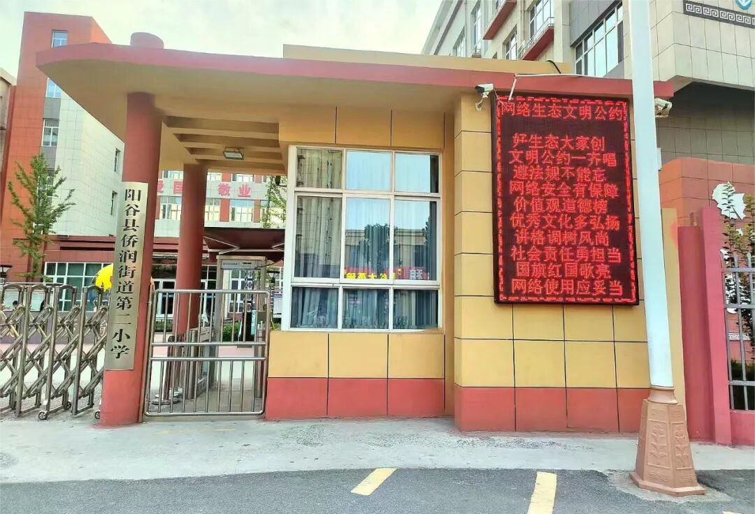 活动期间,学校充分利用校门口的大屏作为宣传阵地,滚动播放网络生态文明公约,扩大网络文明公约的传播范围。