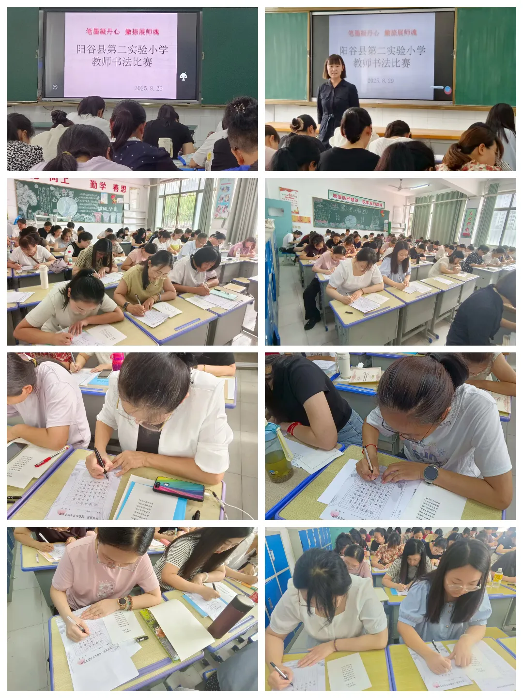 全体教师端坐桌前,凝神聚力,笔尖划过纸张的沙沙声交织成专注的旋律。大家严格遵循汉字书写规范,横平竖直间藏着对传统文化的敬畏,撇捺舒展中尽显教师的严谨态度——或字迹清秀如春风拂柳,或刚劲有力似松柏挺立,每一份作品都是教师扎实基本功的生动注脚。