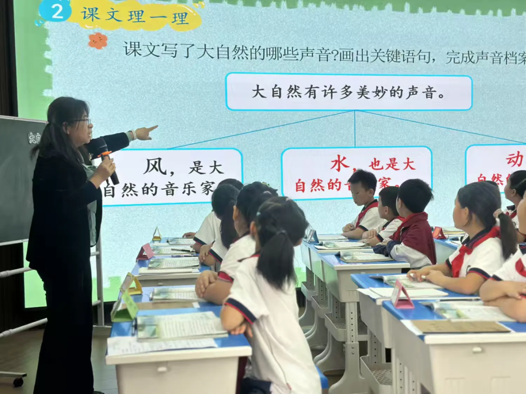刘老师的课激情四射,教学环节层层递进,通过丰富的活动引导学生认识情绪、内化语言、学会主动关心他人的心情和感受,并针对故事背后的价值取向与主人公的行为态度开展讨论,加深对主题意义的探究和理解。真正将英语学科核心素养落地生根。王桂华老师执教的三年级上册21课《大自然的声音》,则通过细腻的情感引导和巧妙的教学设计,让学生仿佛置身于大自然之中,感受到了文字的魅力和大自然的美妙。两节示范课充分展现了名师的教学风采和专业素养,为乡村教师提供了优秀的教学范例。