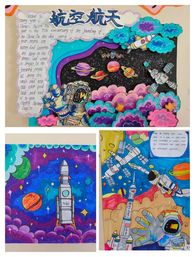 孩子们的作品不仅主题鲜明、突出特点与内容,而且色彩运用和谐,构图绘画搭配巧妙。极大地激发出同学们的探索精神,挖掘出他们多才多艺的潜能。